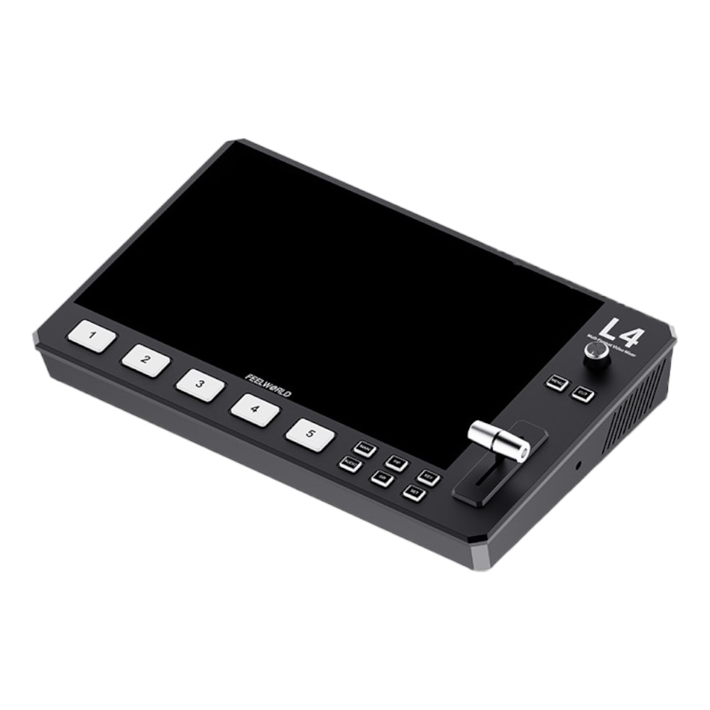 Feelworld L4 Video Mixer on kompaktne ja võimas livestream’i videoswitcher, mis võimaldab reaalajas lülitada, miksida ja edastada videot kuni viiest allikast – 1× SDI ja 4× HDMI. Seadmel on sisseehitatud 10,1-tolline puutetundlik LCD-ekraan, mis teeb töövoo kiireks ja intuitiivseks ilma eraldi välise monitorita.