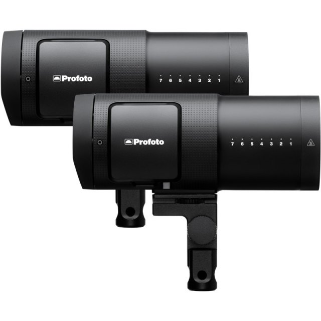 Profoto B30 Duo kit sisaldab kahte B30 välklampi. Pildil on need kaks lampi kujutatud küljelt, üksteise ees. Esimene välk varjab tagumise välgu alumist osa. Välgud on musta värvi.