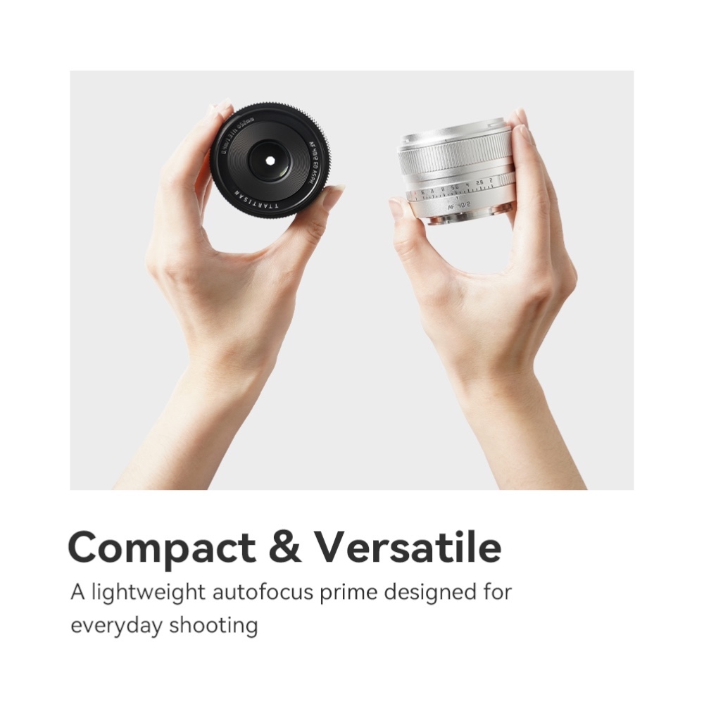 TTArtisan AF 40mm F2 on kompaktne ja kerge autofookusega täiskaader-objektiiv, mis sobib igapäevaseks fotograafiaks, portreede, tänava- ja toidufotode jäädvustamiseks. 40 mm fookuskaugus pakub loomulikku vaatenurka ning F2 valgusjõud võimaldab pildistada ka hämaras ja saavutada meeldiva taustahägususe.